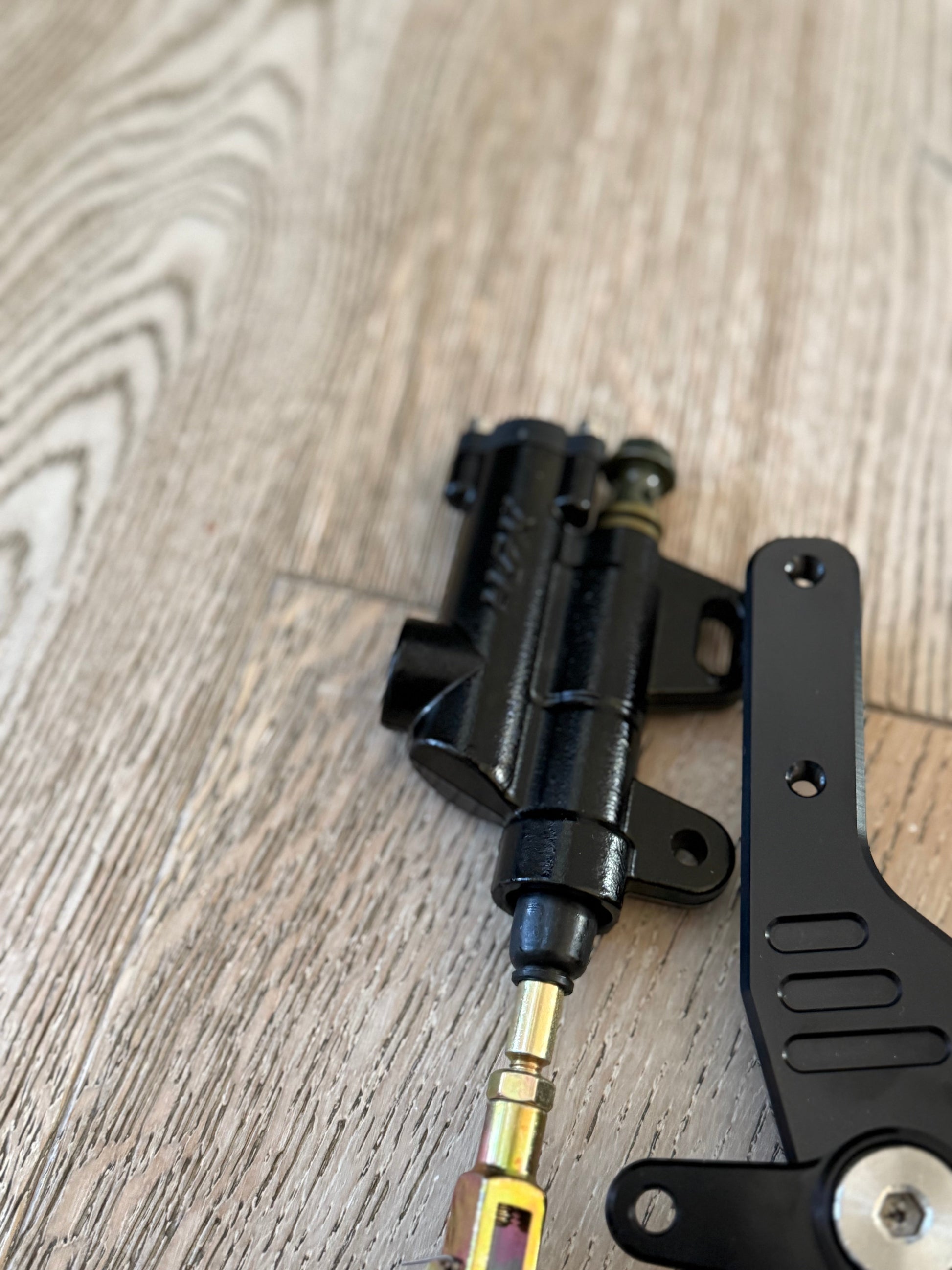 - Foot brake only comes with: Hose, Custom laser engraved foot brake, Brake hose, master cylinder, zip ties, wire guides, free stickers, bolts